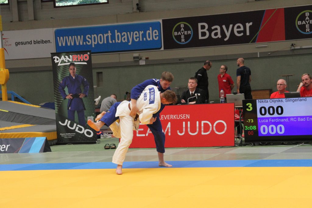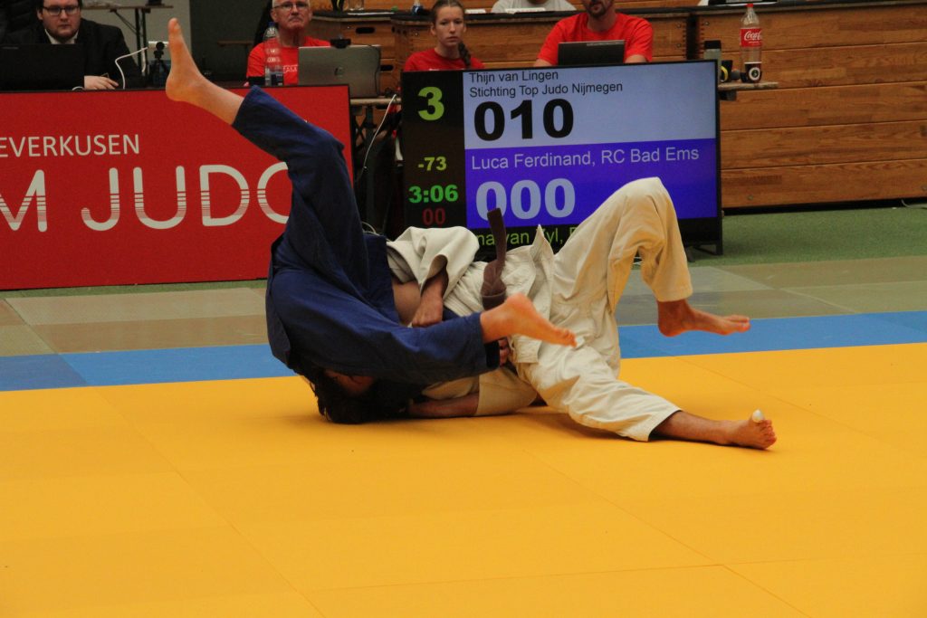 In der Altersklasse U17 starteten bis 73 kg mit Christian Klaas und Luca Ferdinand gleich zwei Bad Emser Judoka. Luca Ferdinand unterlag in Runde eins gegen Thijn van Lingen (Top Judo Nijmegen) durch einen Abtaucher. Christian Klaas siegte gegen Daniel Feller (BFC Solingen) und verpasste gegen Edem Kurtumerov (JC Wiesbaden) den Sprung in die nächste Runde und musste auch in die Trostrunde. Hier gewann Luca Ferdinand gegen den Niederländer Nikita Olijniks (Slingerland) mit einem Ushiro-Goshi bevor er auf seinen Trainingspartner Christian Klaas stieß. Beide Judoka schenkten sich nicht viel und am Ende gewann Luca Ferdinand mit einem Haltegriff. Nun ging es weiter gegen Nikita Gildisch (TSV Bayer 04 Leverkusen). Lange stand es Yuko zu Yuko ausgeglichen ehe Luca noch unterlag. Platz 11 für Luca Ferdinand im 37 Teilnehmerstarken Feld unter 73 Kilogramm.