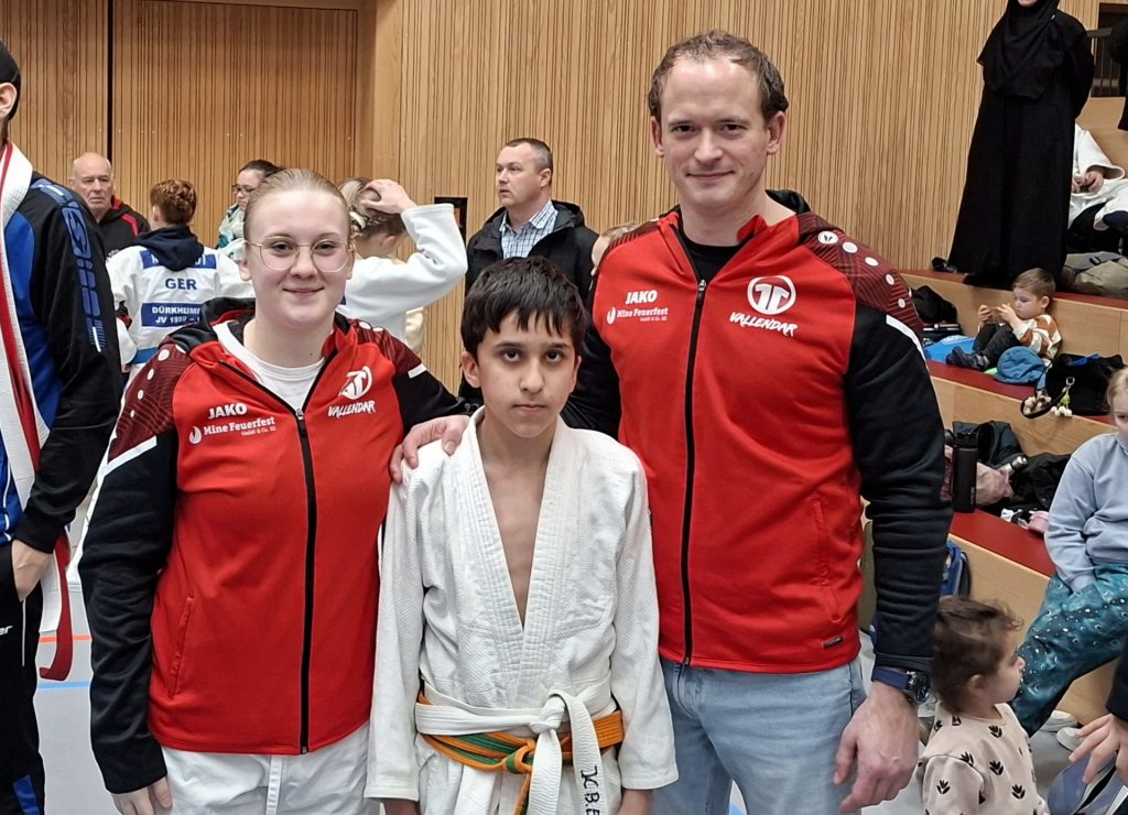Die U15 Starter am zweiten Tag: v.l.: Lilly Böhnisch, Norik Hajoyan und Trainer Carl Eschenauer